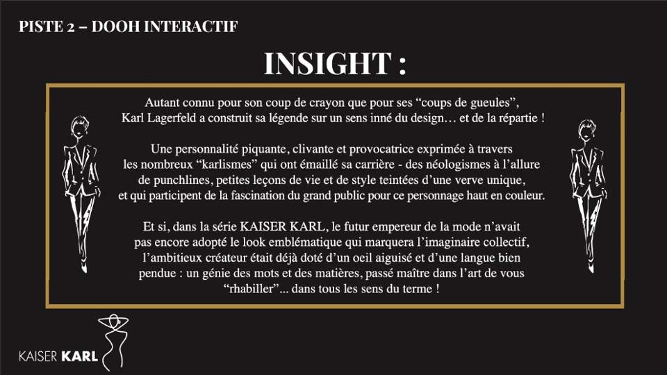 Créer un fil conducteur entre le Karl méconnu présenté par la série et celui d’aujourd’hui encré dans l’imaginaire collectif. Comment ? En valorisant des notions intemporelles : la personnalité et la mode.
